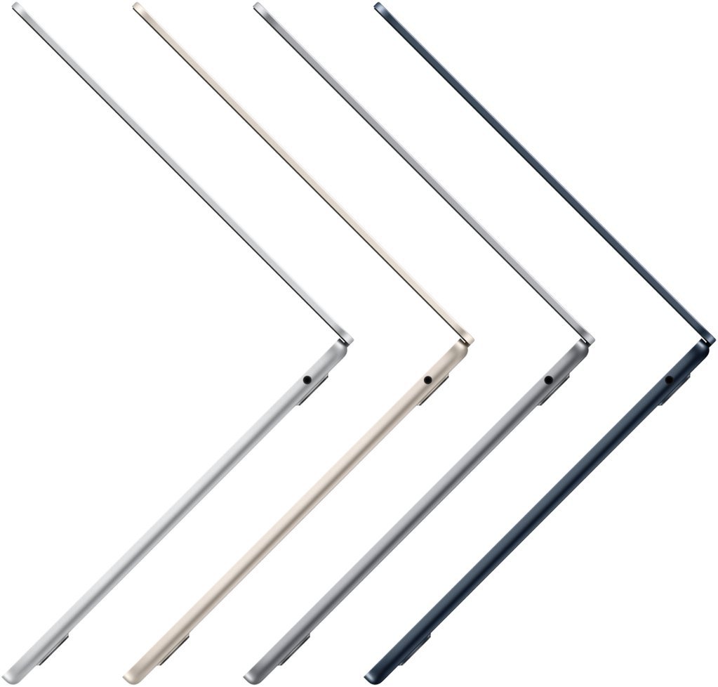 - ⁴The display on the 13-inch MacBook Air has rounded corners at the top. When measured as a standard rectangular shape, the screen is 13.6 inches diagonally (actual viewable area is less).