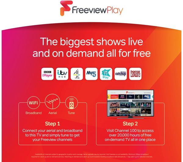 Please note: Freeview and some apps & services are only available in the UK. Apps & services may be removed, or no longer supported by third party content providers at any time. Some apps & services may not be available at launch and may require a firmware update before becoming available.