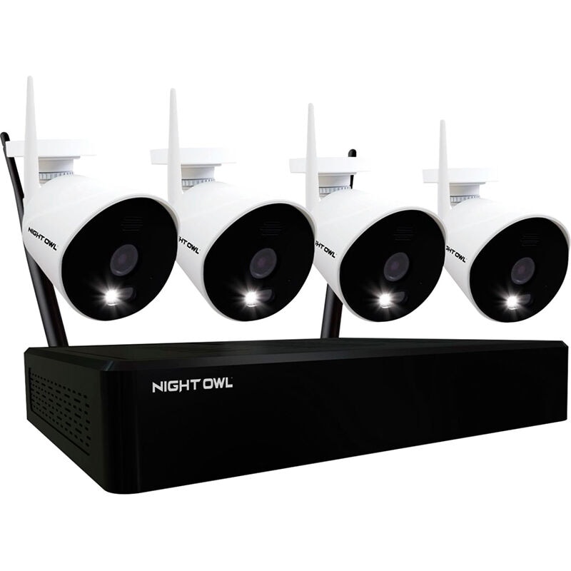 Wireless, Night Owl eight-channel NVR surveillance system. The two-way audio communication lets you converse with guests, while four Full HD IP cameras have color night vision capability to capture clear video evidence. This Night Owl eight-channel NVR surveillance system features Wi-Fi connectivity for remote access via Android and iOS devices.