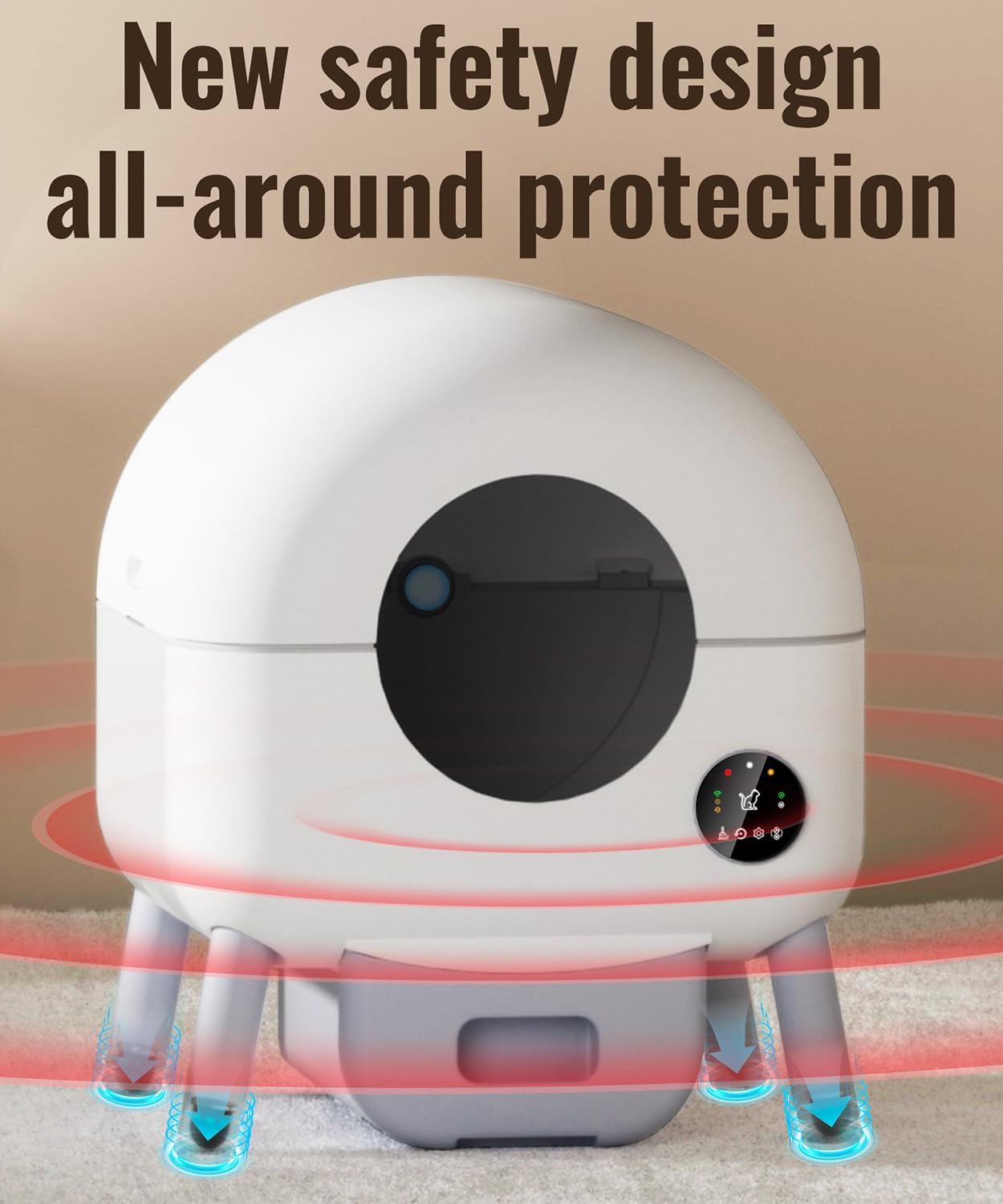 - Cat Safety First: Our self-cleaning cat litter box prioritizes your cat’s safety with sensors that detect their presence and a delay mechanism to prevent cleaning cycles while your cat is inside. Rest assured, your feline companion is safe and secure