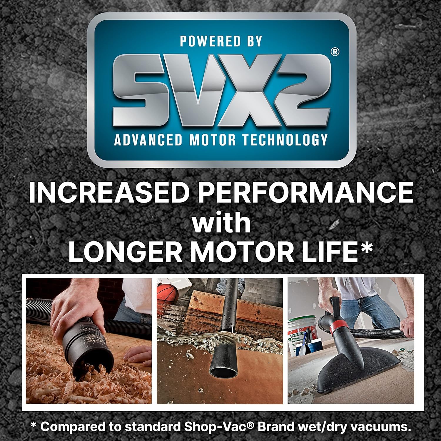Tackle the toughest cleanup tasks with the Shop-Vac 8251205, a heavy-duty 12-gallon wet/dry vacuum built for garages, workshops, and job sites. Featuring SVX2 Motor Technology, this powerhouse delivers more suction, longer motor life, and quieter operation—all in a rugged, easy-to-maneuver design.